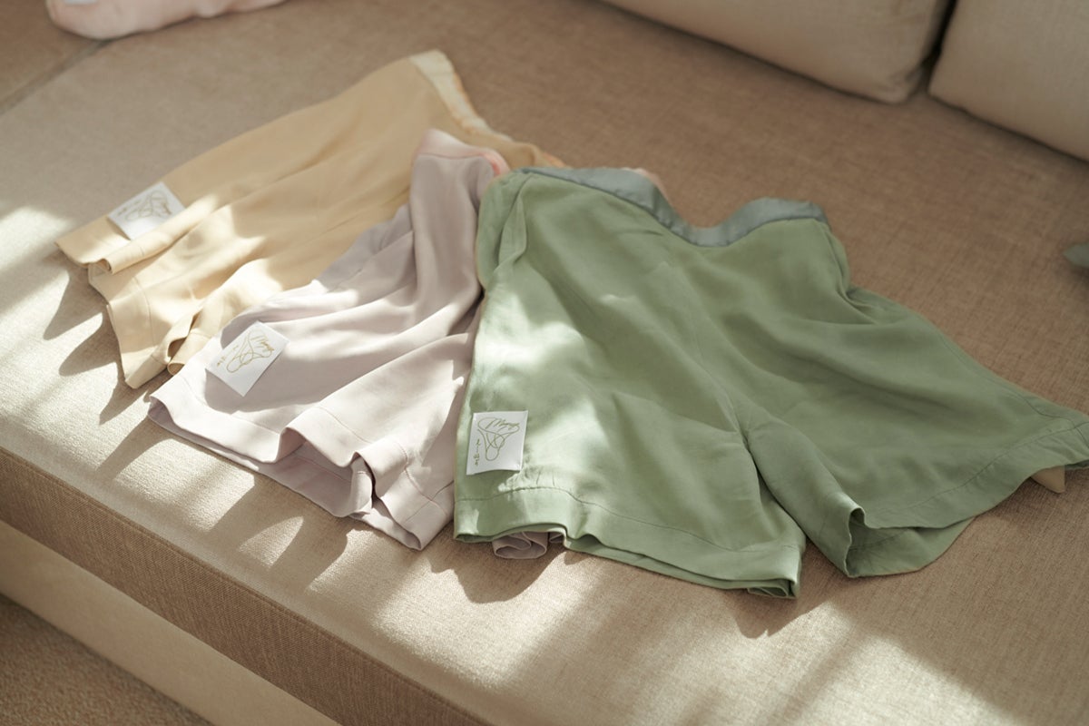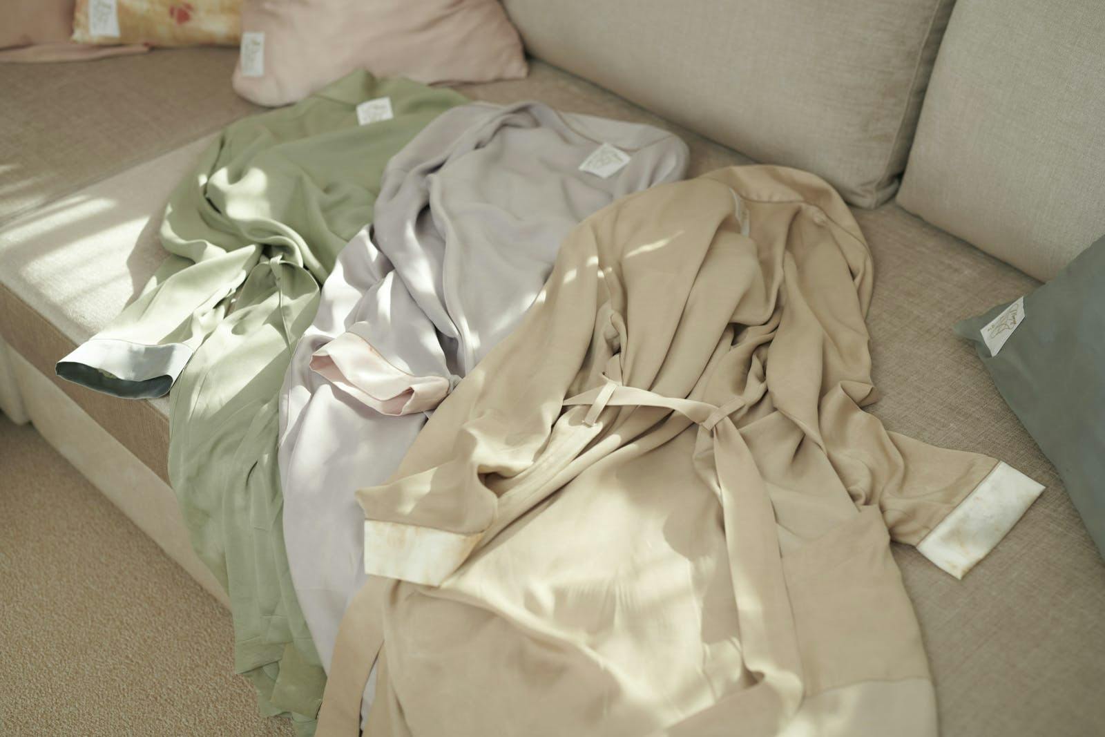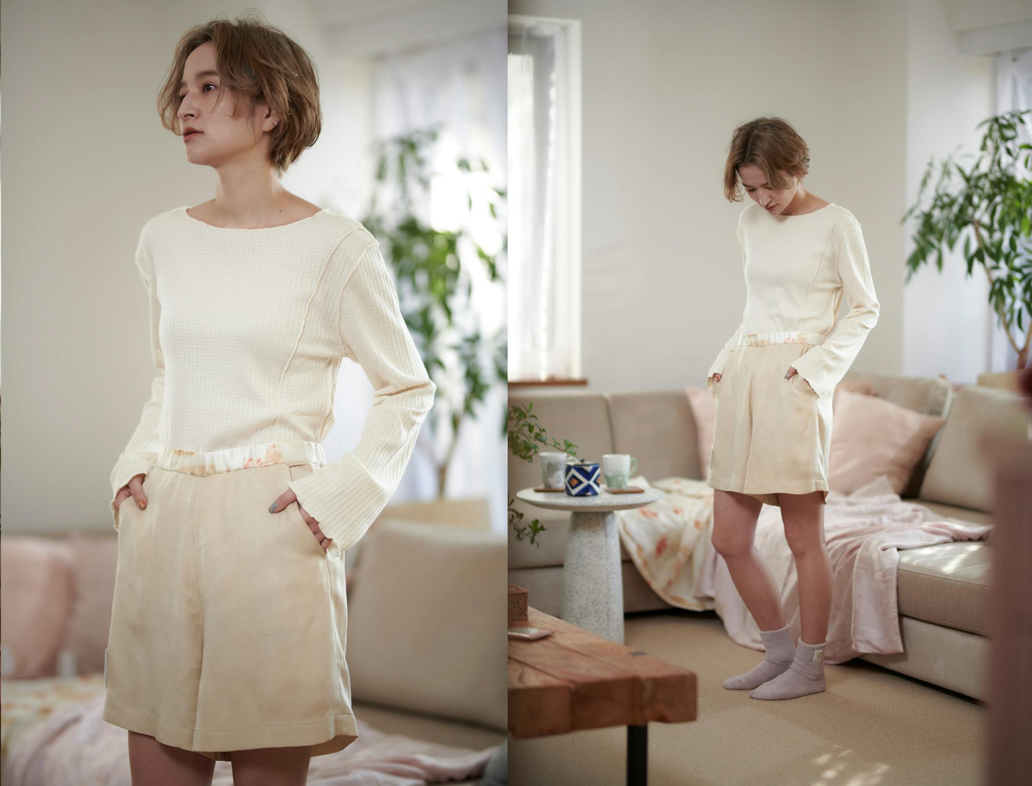 京都と東京の職人さんが一枚一枚の生地を手作業で、草木染め・花びら染めの技術を使って染め上げているパジャマ。花に包まれた気持ちになる、極上のラグジュアリー時間をお楽しみください。