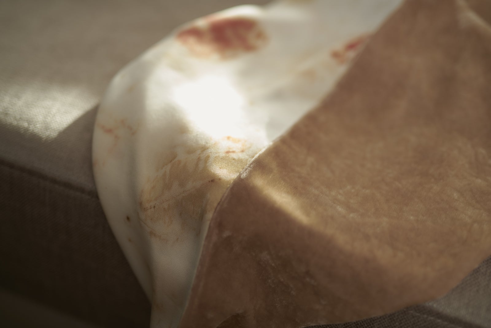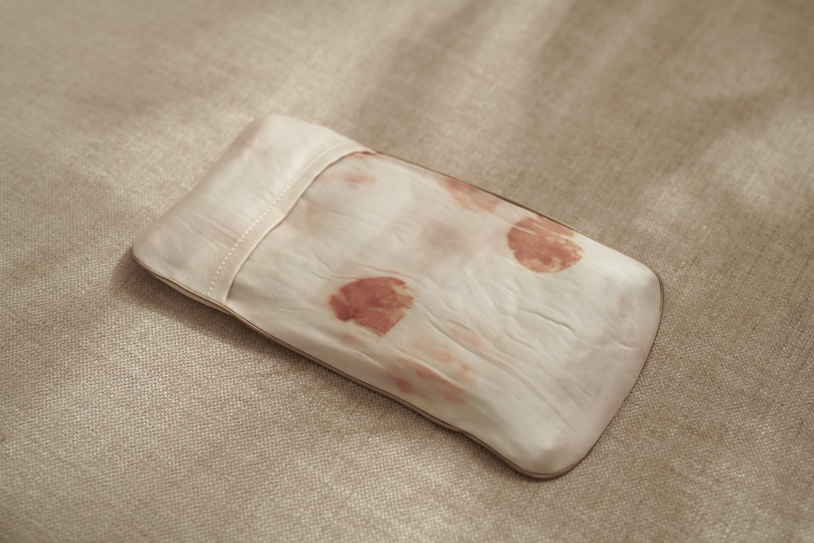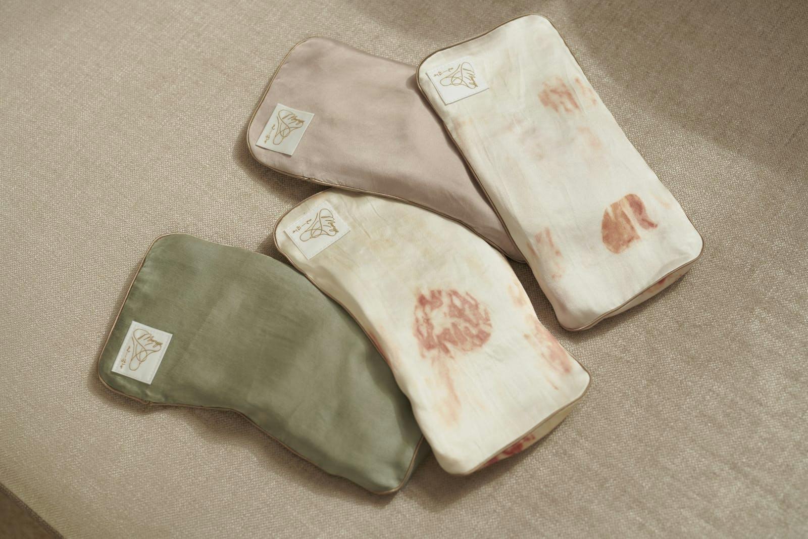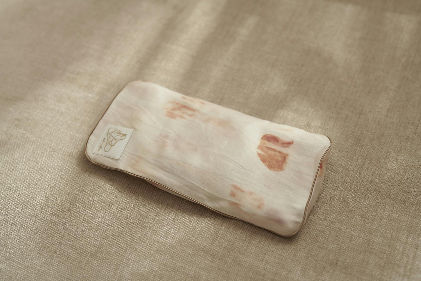 京都と東京の職人さんが一枚一枚の生地を手作業で、草木染め・花びら染めの技術を使って染め上げているクッション。染めた後は、国産シルクを国内縫製工場にて丁寧に縫製しています。ファスナーは外側から見えにくいコンシールファスナーを採用。花のもつ優しさに包まれる極上体験を楽しんでください。