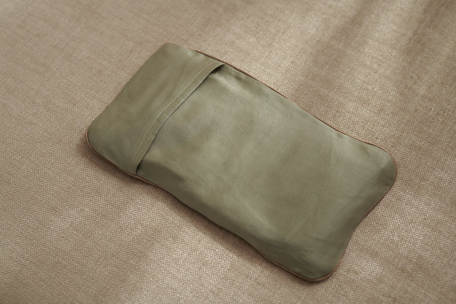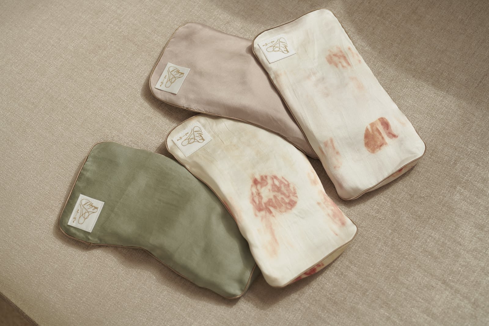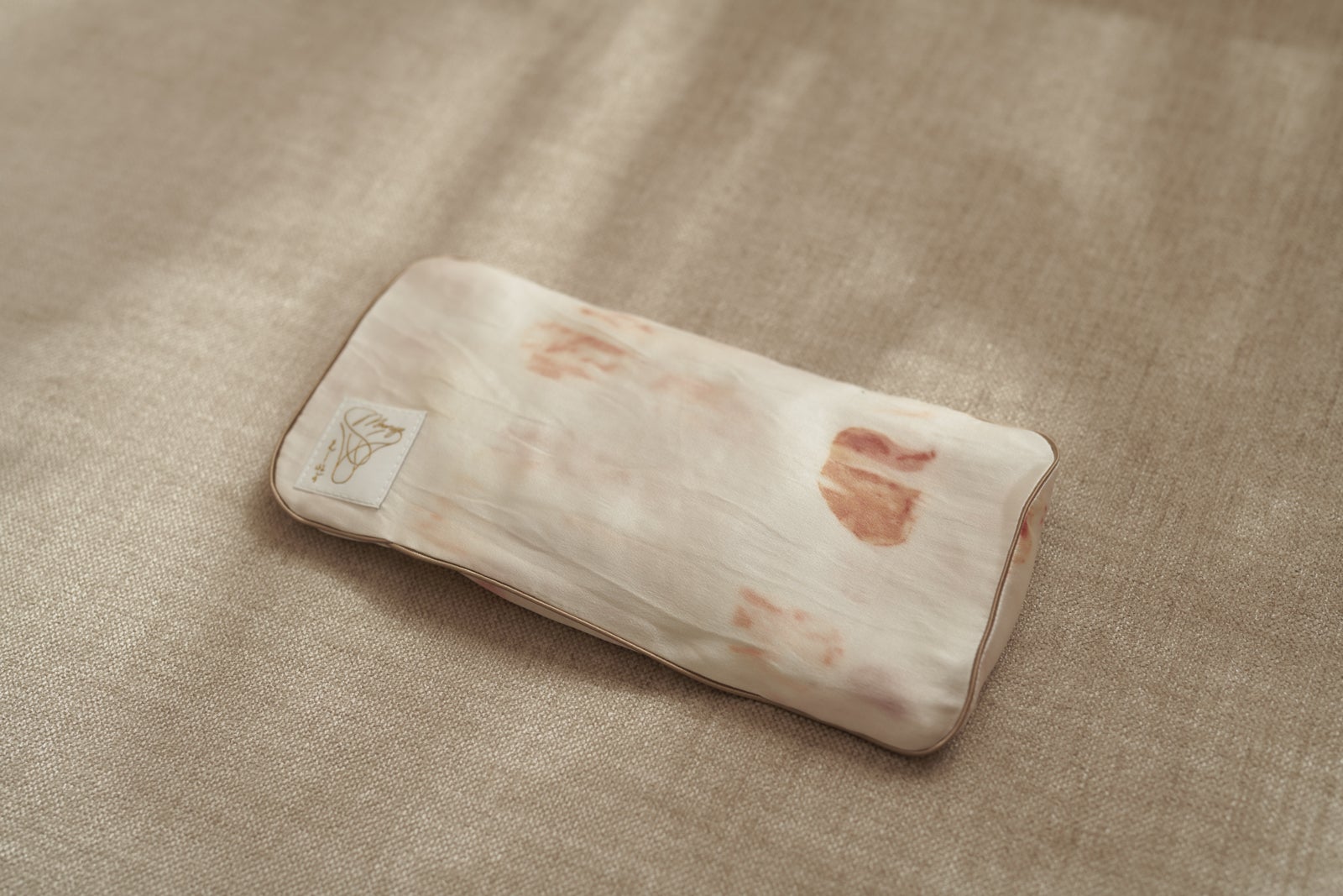 パソコンやスマホで何かと酷使しがちな現代人の目に、おすすめしたいアイピロー。温めたり冷やしたりして、疲れた目を優しくケアしてあげて下さいね。生地は、京都と東京の職人さんが一枚一枚手作業で、草木染め・花びら染めの技術を使って染め上げています。フチのパイピングが高級感アップ。花のもつ優しさに包まれる、極上体験をお楽しみください。