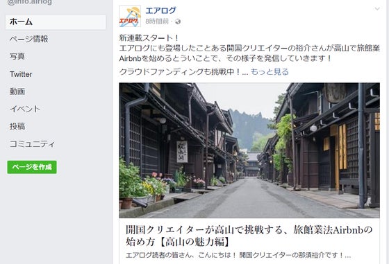 皆さんはAirbnbにまつわる話題を扱うブログ「エアログ」をご存知ですか? こちらで自分の高山「暮らす宿」プロジェクトの連載が始まりました! エアログは面白メディアなんで全力でふざけていこうと思ってます!(宿は真面目に作ってます) この後美人不動産屋さんやカリスマ建築士さんも登場するので更新をお楽しみに! 開国クリエイターが高山で挑戦する、旅館業法Airbnbの始め方【高山の魅力編】http://airlog.jp/airbnb/takayama-01/