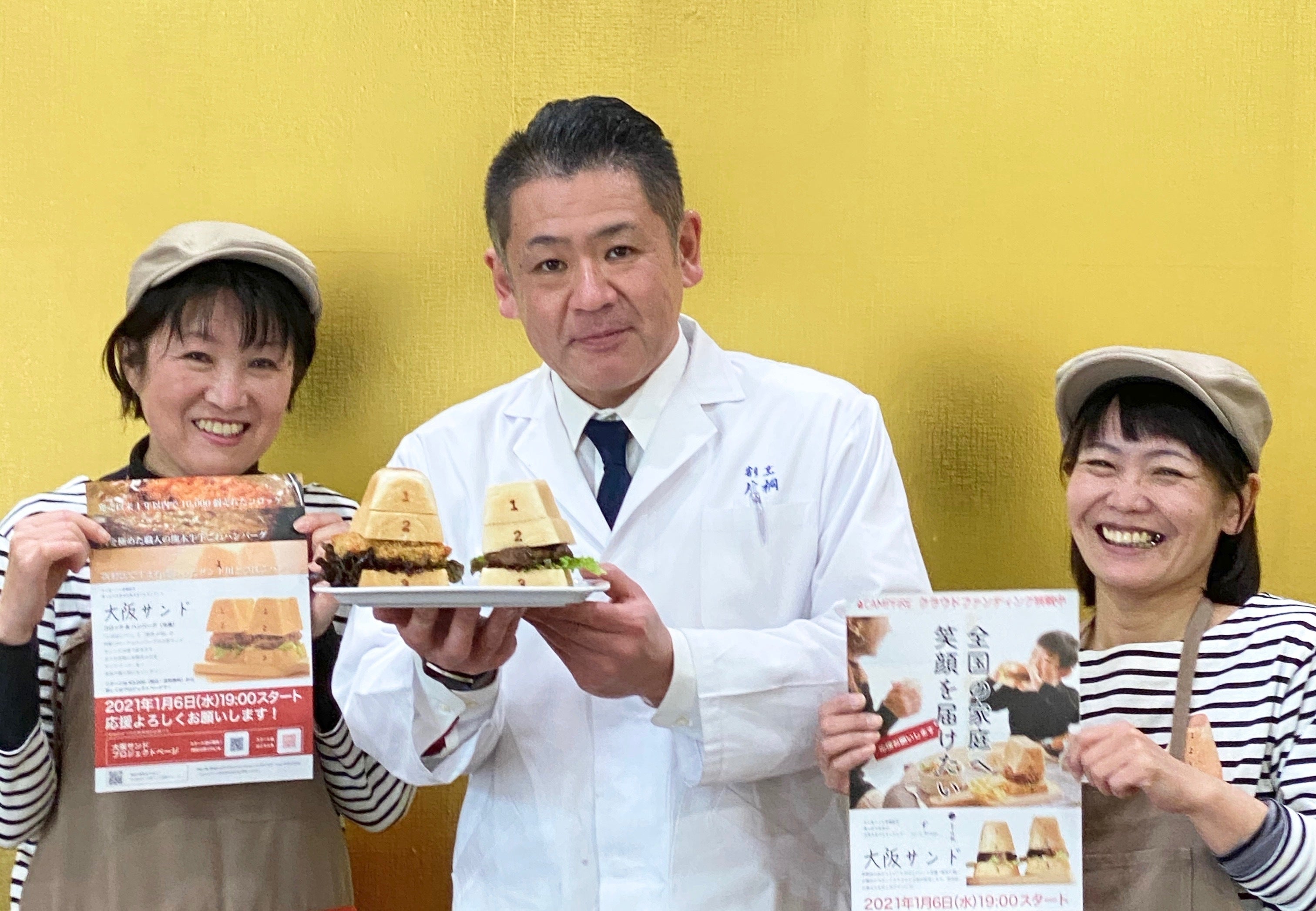 Pain de Singe(パンドサンジュ)店主の門田充です。2/16を持って「大阪サンド」のクラファン募集期間を終了しました。【結果】支援者数 142人支援総額 1,274,000円目標達成率 424%積み上がった大阪サンドの高さ 136.0メートル目標をはるかに超えるご支援をいただくことができました。ありがとうございました!!ご支援の実数で積み上がった大阪サンドの高さは大阪城・太陽の塔・通天閣と突破できました。大阪から全国へのスローガンで掲げた「東京タワー」には届くことができませんでしたが、積み重なる高さは届けられる笑顔の数で楽しく食べていただいている食卓の風景を想像しながら毎日喜んでいました。このかけがえのないお気持ちに応えられるよう今後取り組んでまいります!愛されてきた「とびばこパン」をリニューアルして伝統の味「和牛コロッケ・ハンバーグ」を冷凍してコロナの苦境をそれぞれのアイデアで取り組んでいたパン屋と老舗割烹の出会いから始まり、ここまで来ることができました。パン屋と割烹、話題のパンと伝統技術、一見畑違いにも思える急造タッグが機能したのは「自分たちが作ったものを食べて喜んでもらいたい、元気になってもらって自分たちも元気をもらいたい」この気持ちが、両店の経営者だけでなく全スタッフに揺るがないものとしてあったからです。そして発信したものにこんなにたくさんの応援をいただいたこと、作る人と食べる人の心かようキャッチボールができたことが何より嬉しく、誇りに思います。本当にありがとうございました。まずはお礼の気持ちを伝えさせていただきます。全国の食卓に笑顔を届けるため、Pain de Singeと割烹片桐は取り組んでまいります。飲食店の未来をひらいていきます。