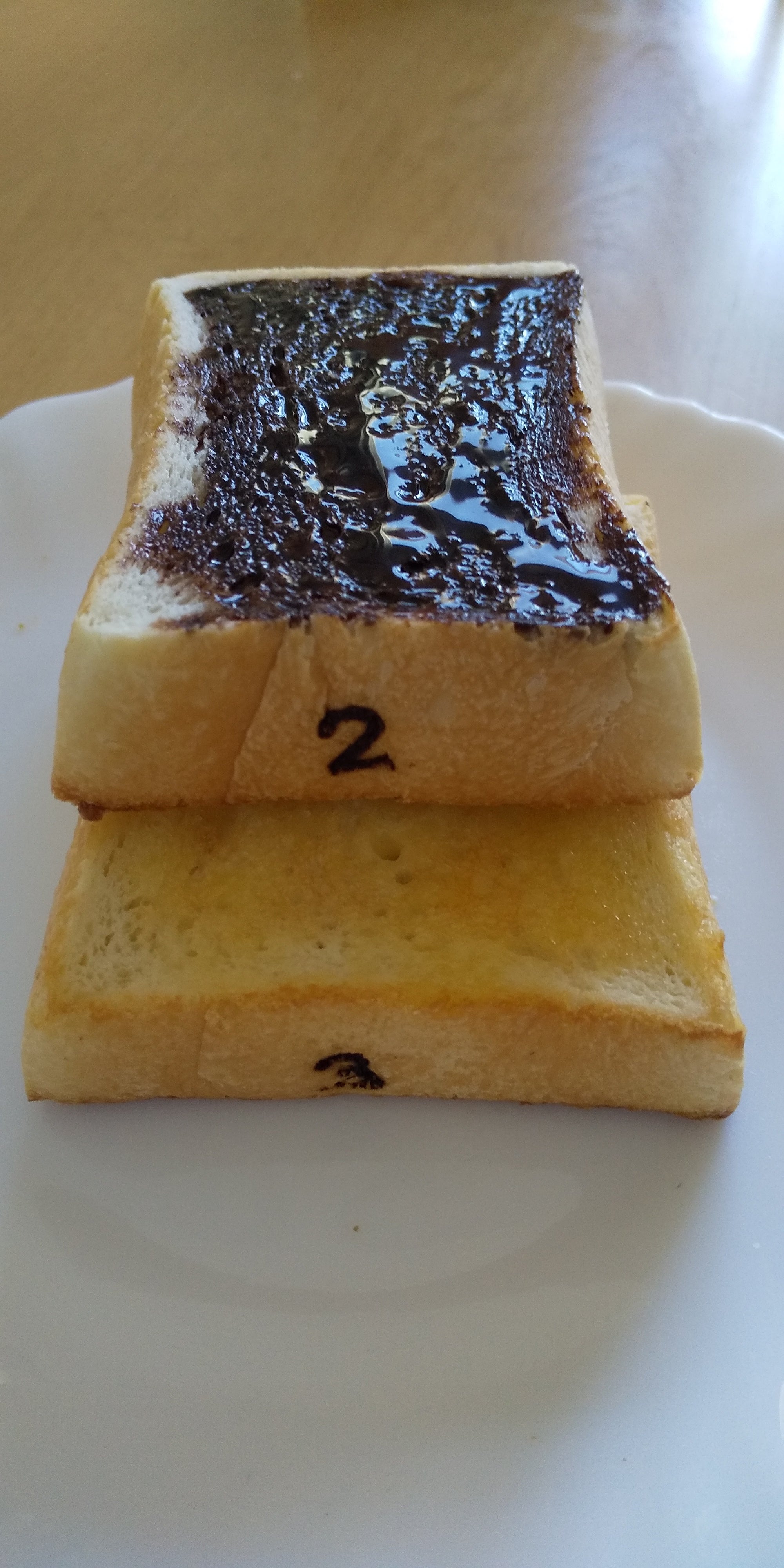 今日はとびばこパンの小麦について。微粉砕小麦といって細かく砕いた小麦、普通の小麦粉より粒子がとっても細かい小麦を使用しています。粒子が細かい分、表面積がおおきく水や空気とたくさん触れることができ、その分くっつきやすく離れにくく、しっかりと水を抱き込む性質を持っています。実際手にとると、手から離した時に手に粉が残るんです。机にこぼしたときもぺたっとはりついて簡単に払ってぬぐいきれない、笑だから副材料加えなくてもしっとりふんわり焼き上がります。今回のとびばこパンは食感にもこだわって強力粉だけでなく同じく微粉砕の薄力粉も使用しているのもポイントです。食べた時口どけの良さがわかってもらえたら嬉しいです。