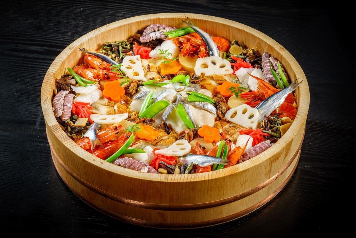 まつり寿司やちらし寿司とも呼ばれるばら寿司は、岡山藩主池田光正の節約令から生まれました。「庶民は一汁一菜にせよ」との命令に対し、祭りの日にごちそうを食べたかった人々。魚や野菜をすし飯に混ぜて目立たないようにすることで、見た目は一汁一菜だが、中にはたくさんの具が入った寿司を味わえるようにしたそうです。