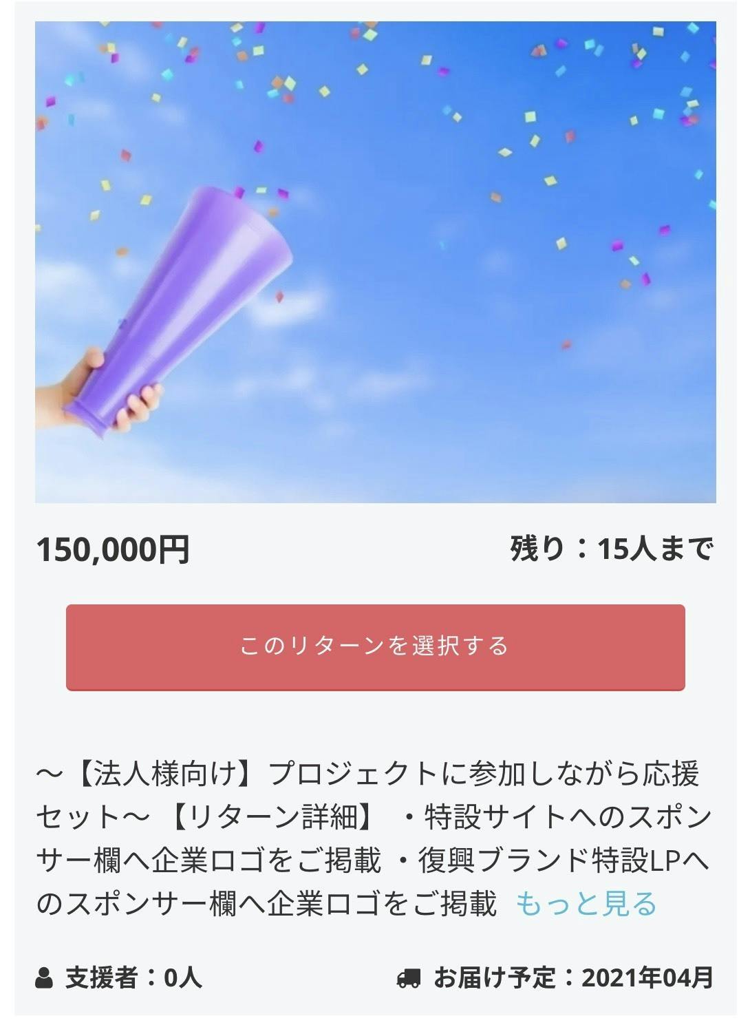 渾身のリターンを用意しましたので是非ご覧ください。