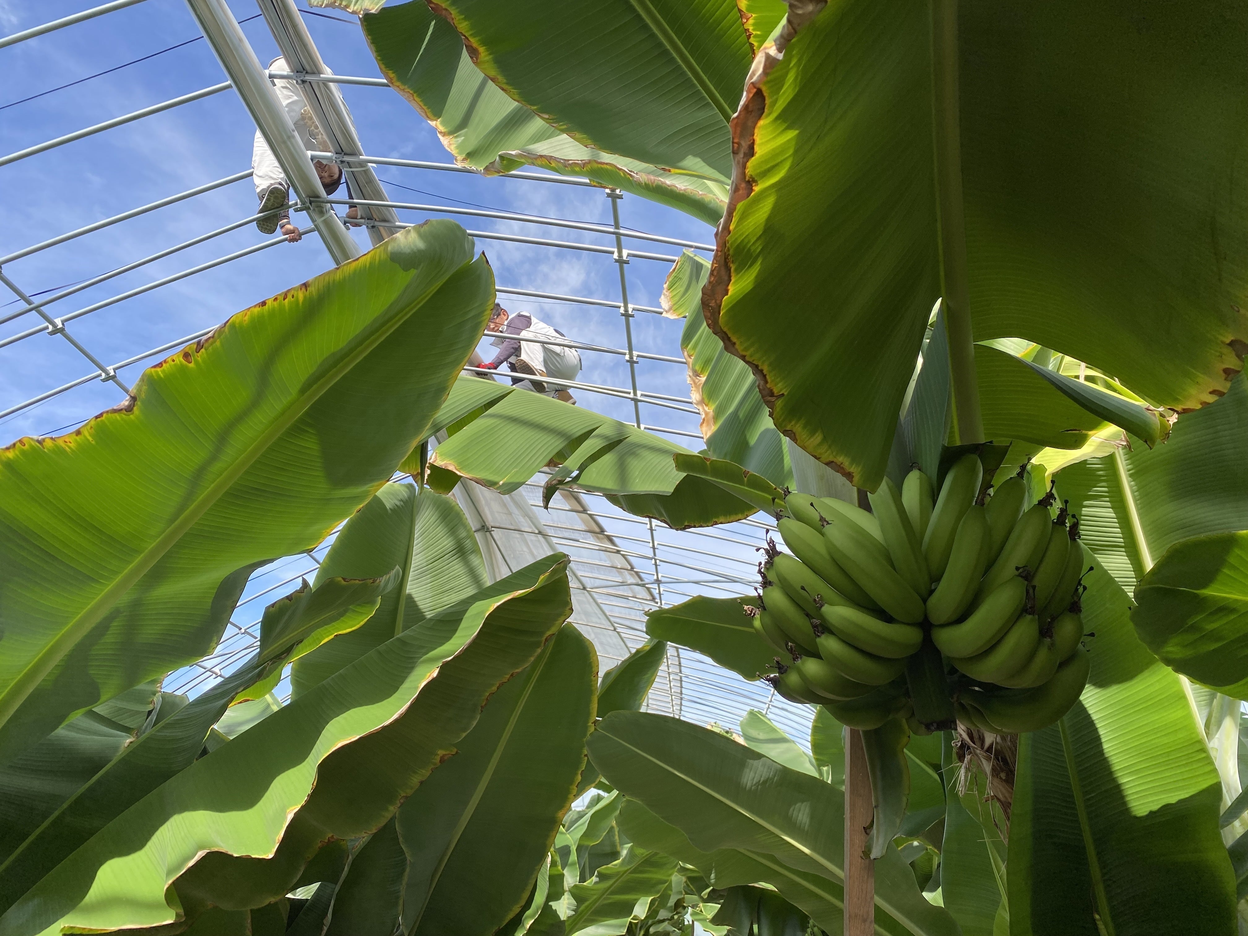 さずがに南国育ちのバナナもこう暑くては、元気がなくなってしまいます。バナナを暑さから守るために 屋根のビニールを取っ払いました。これで少しは風通りもよくなり より美味しいバナナをお届けいたします。
