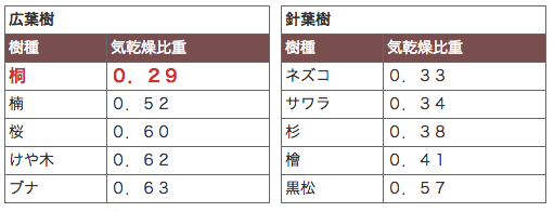 つまり日本列島に育つあらゆる樹木の中で一番軽い木材です。