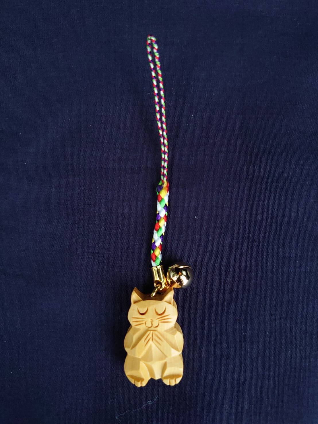 (1)1,100円コース その⑤ お願いネコの木彫りの根付(柘植)