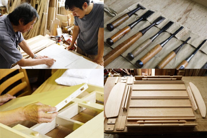 私たちは、家具のまちとして知られる福岡県大川市で明治45年から福岡県特産工芸品である総桐箪笥の製作を続けております。また最近では「桐で軽い家具を作ってほしい」との依頼が増え、テーブルやベッド、 軽くて使いやすい様々な家具を桐を使って制作しています。歴代受け継いできた技術と経験を活かし、古くなった家具の修理やリメイクにも取り組んでいます。