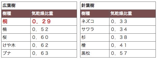 つまり日本列島に育つあらゆる樹木の中で一番軽い木材です。