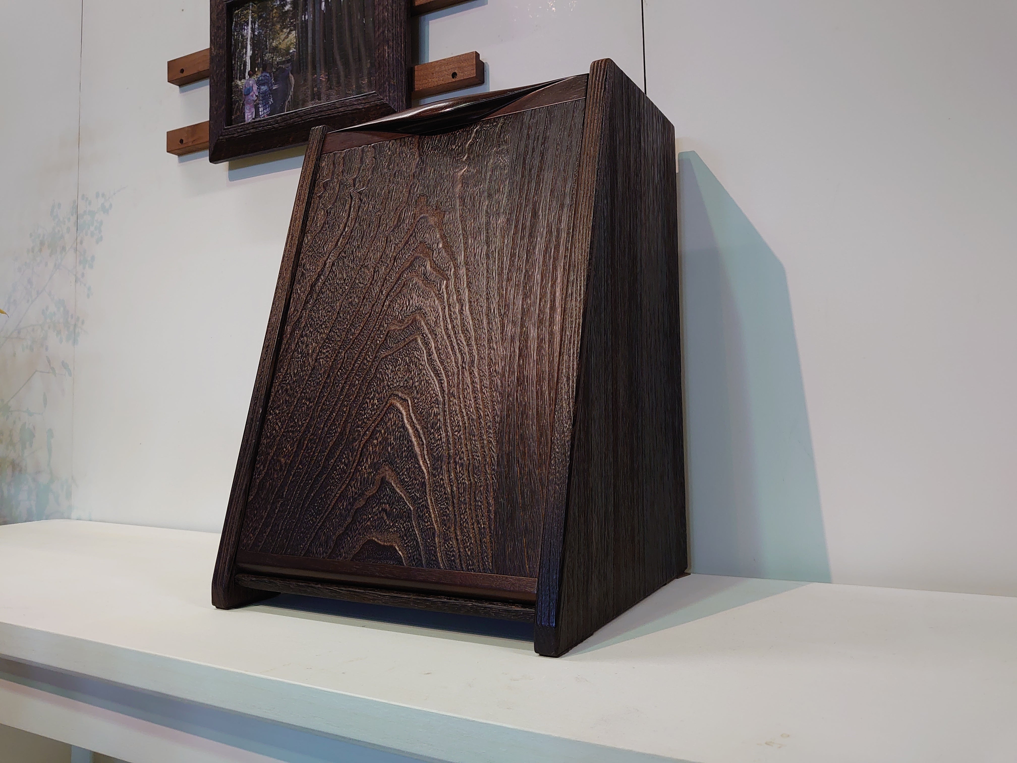 そこで一見、「仏壇には見えない」仏壇にしようという考えになりました。蓋を閉じるとちょっと変わった形の木の箱です。来客時に気を使わせる心配もありません。するとリビング以外の場所でも「目立つ場所にも置ける」というデザインになりました。