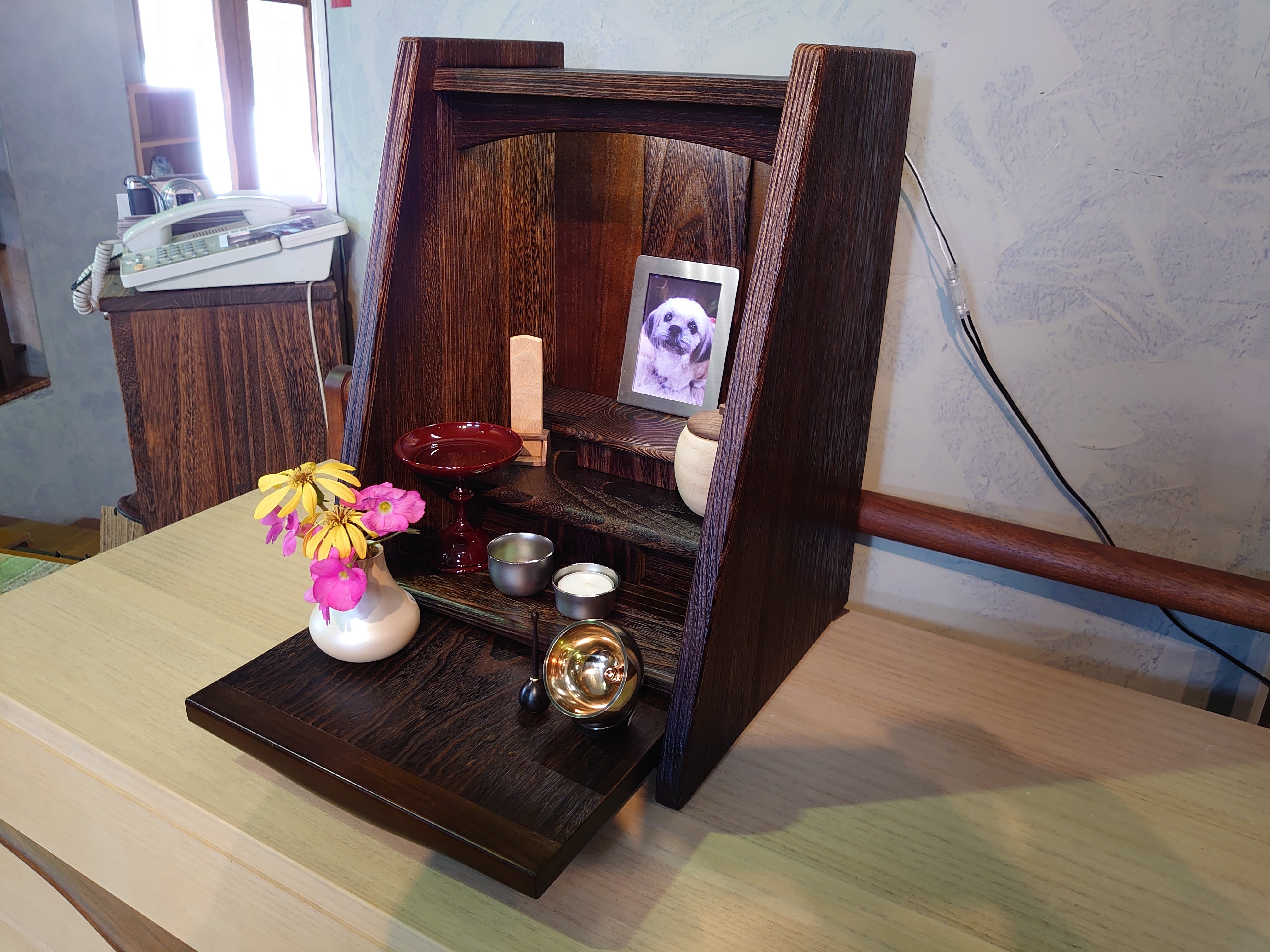 そんな思いと悩みを多くの方持っているということがわかり、なにかそれを解消できるようなものは無いのだろうか?同じ家族なのだから専用の仏壇があってもいいのではないだろうか?犬や猫、ご縁のあったいろんな 種類のペットを供養してほしい!という思いから、「イヌ・ネコ仏壇」の制作をはじめました。