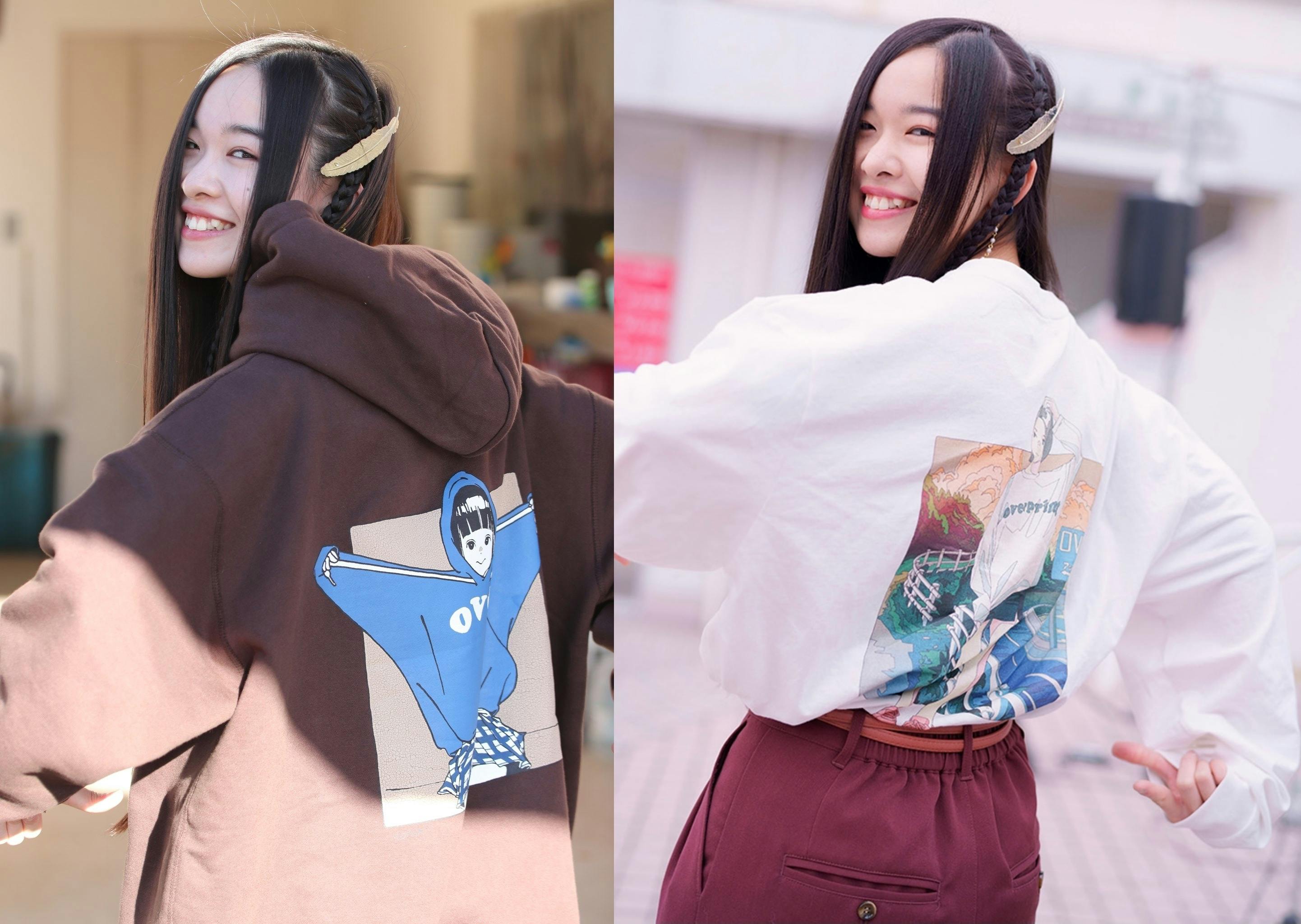 A:背面は画像と同じ古塔つみさんのイラストのプリントになります。前面は見本デザインの単色のプリントになります。