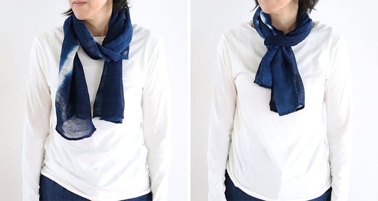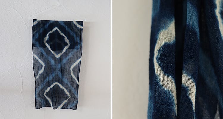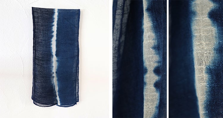 まずは藍そのものの色を味わい、次にゆっくりとした色の変化と自然に出てくるあたり感を楽しんで。