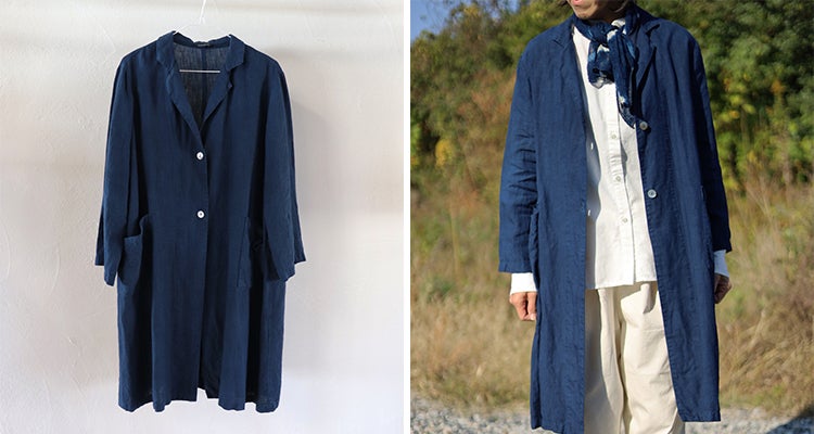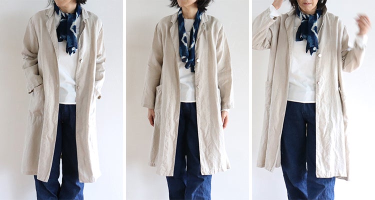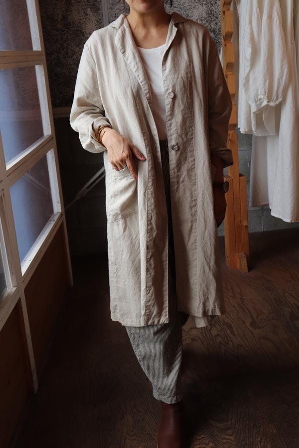 繊細でなめらかな、程よい厚みの麻のコート。