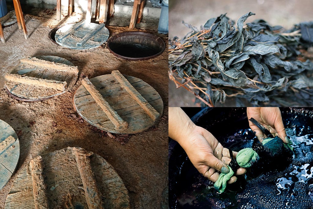 藍の植え付けから刈り入れ、そして発酵を経て本藍染料が出来上がるまで(1年間で1クール)の現場に