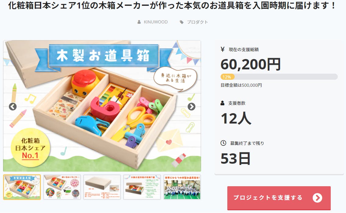 クラウドファンディング初めて3日目、12名の方からご支援をいただきました。