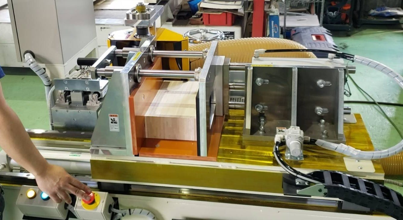 以上の背景により、コの字の部分を一気に加工する専用機械が必要と判断し、今回機械を導入したきっかけとなりました。そして、完成したのがこの機械です。
