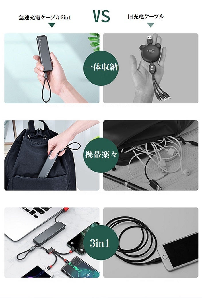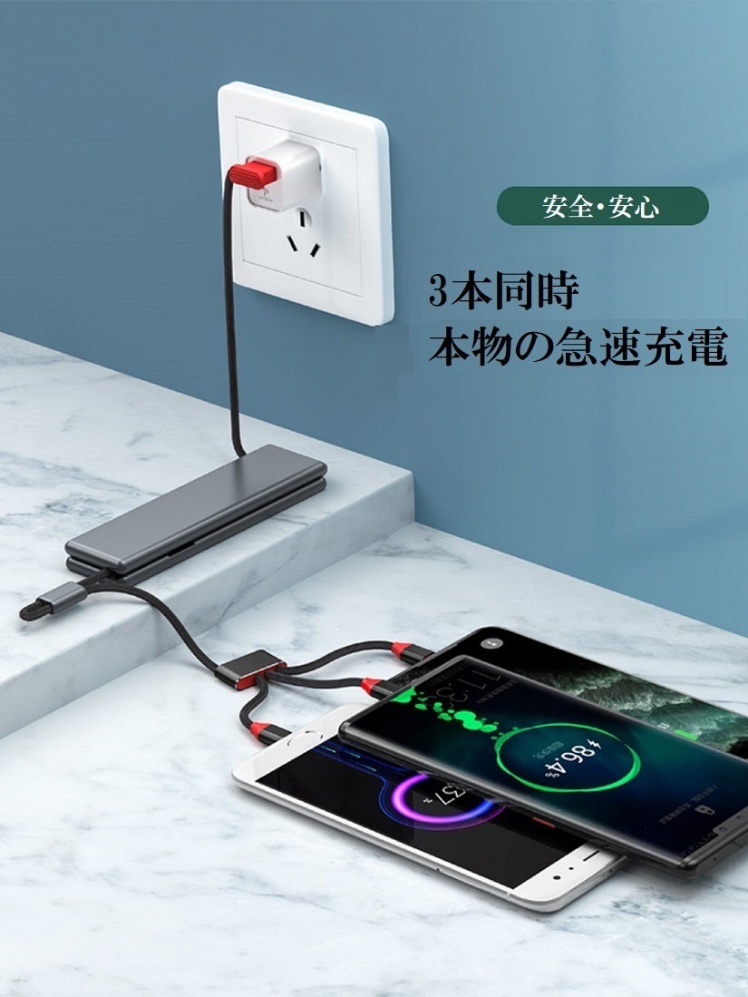 「複数台同時に充電できるケーブル」や、「コンパクト」なケーブルがあったら…なんて思った事はありませんか?本製品ならそのお悩みが解決できます!