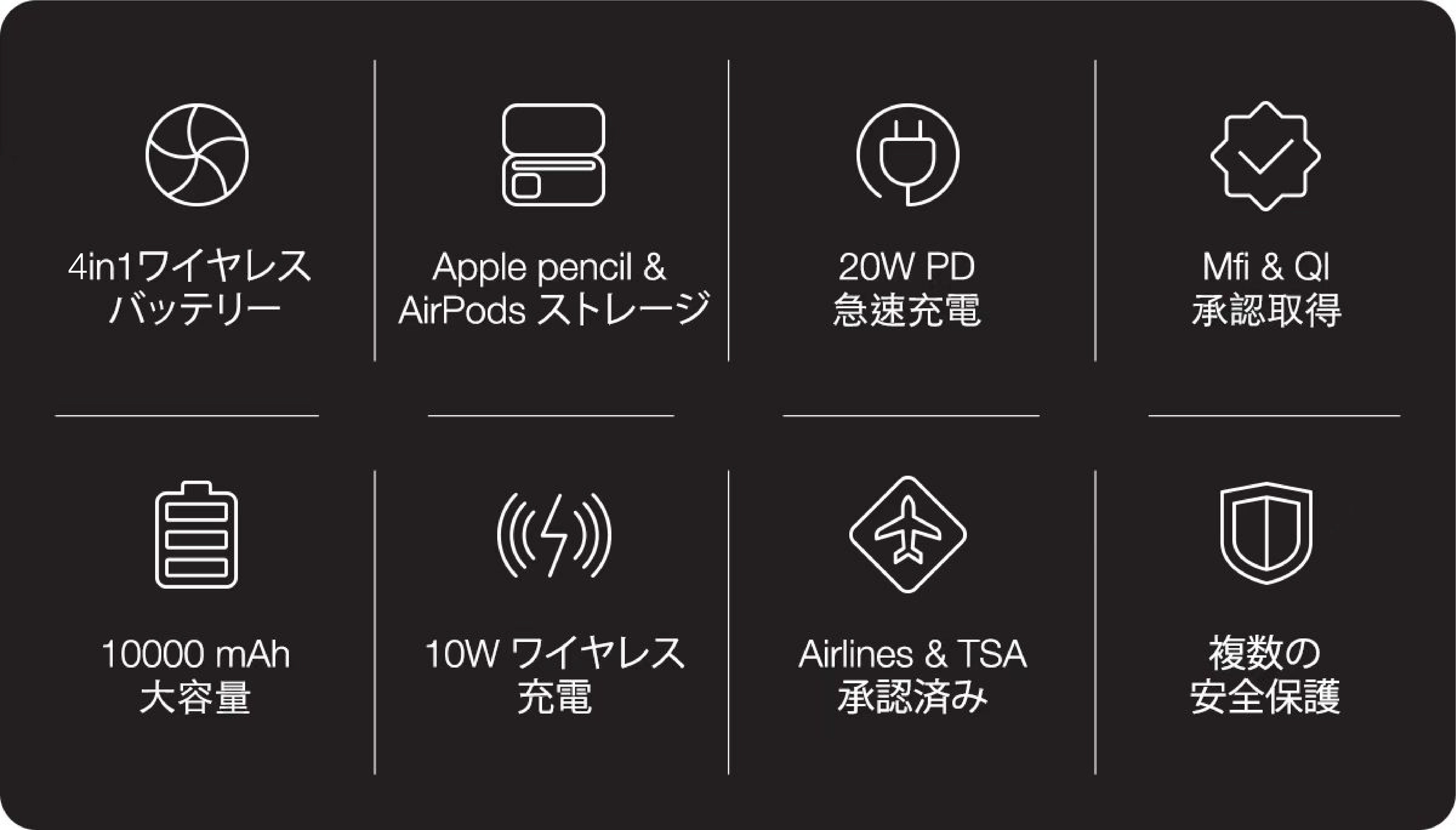 「MOMAX airbox」 は10Wワイヤレス充電と20W PD急速充電対応できます。ゼロから完了まで、3時間だけです。必要な承認は全部取得済みです。AirlinesとTSA承認を取得済みです。MFi承認も取得済みです。QI承認も取得済みです。 安全と安心のご充電させます。
