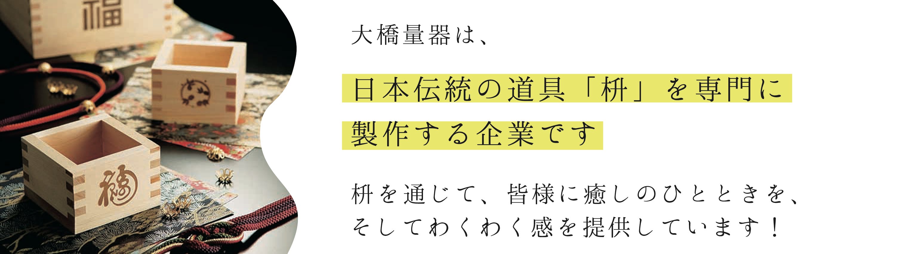 私たちは日本の伝統の道具「枡」を専門に製作する企業として、1950年の創業以来「枡」にこだわり、その技術と文化の伝承に努めてまいりました。現在は36名の社員で、みなさまに優雅さや特別感、癒しやワクワク感を与えられる存在であり続けられる枡づくりに努めています。