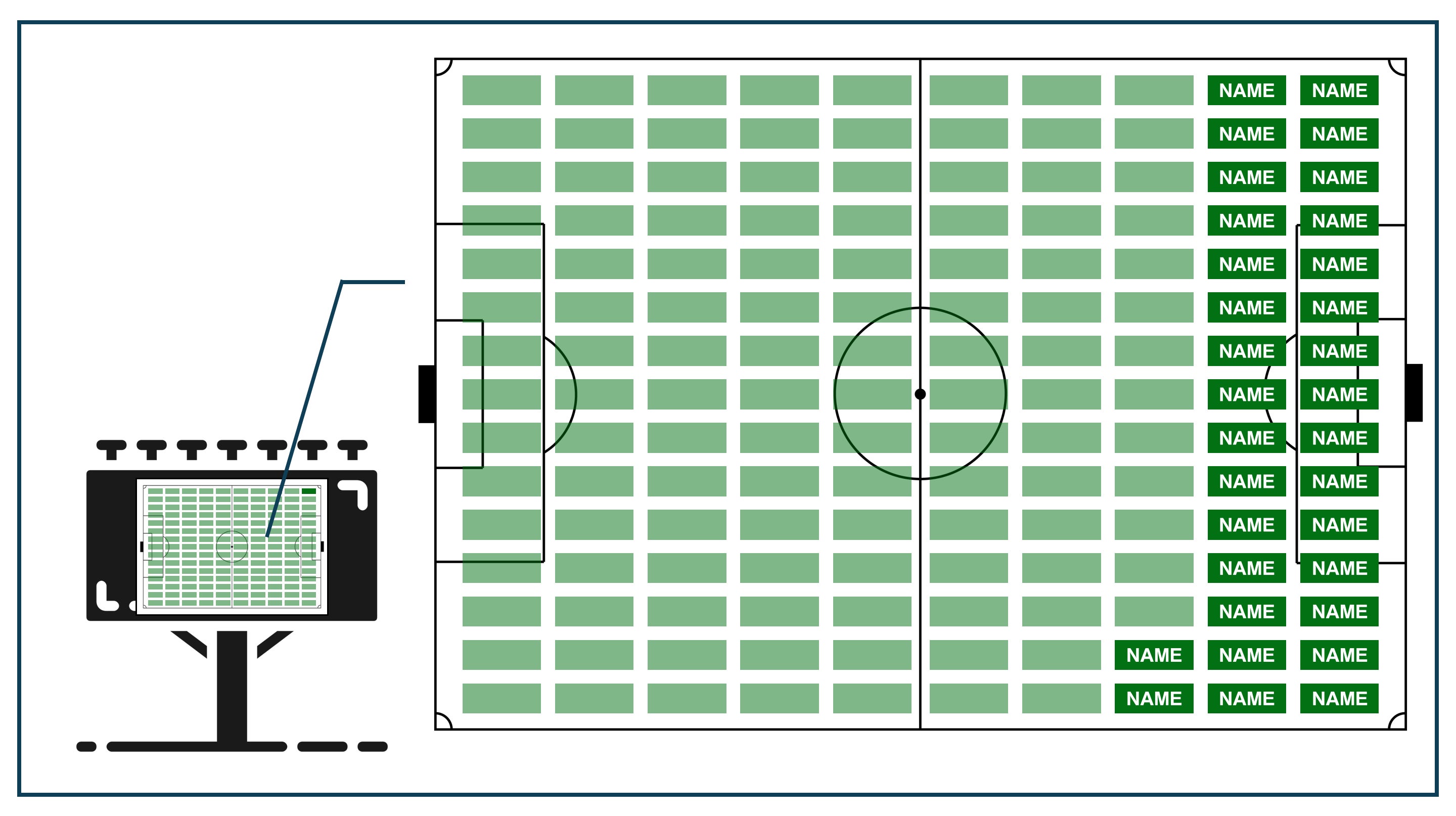 芝生一平米について、3年間に渡ってオーナーになることができます。オーナーになっていただいた方のお名前を、完成した「みんなのスタジアム」の敷地内にて掲載させて頂きます(以下図イメージ)。※すべて「3年間」の権利