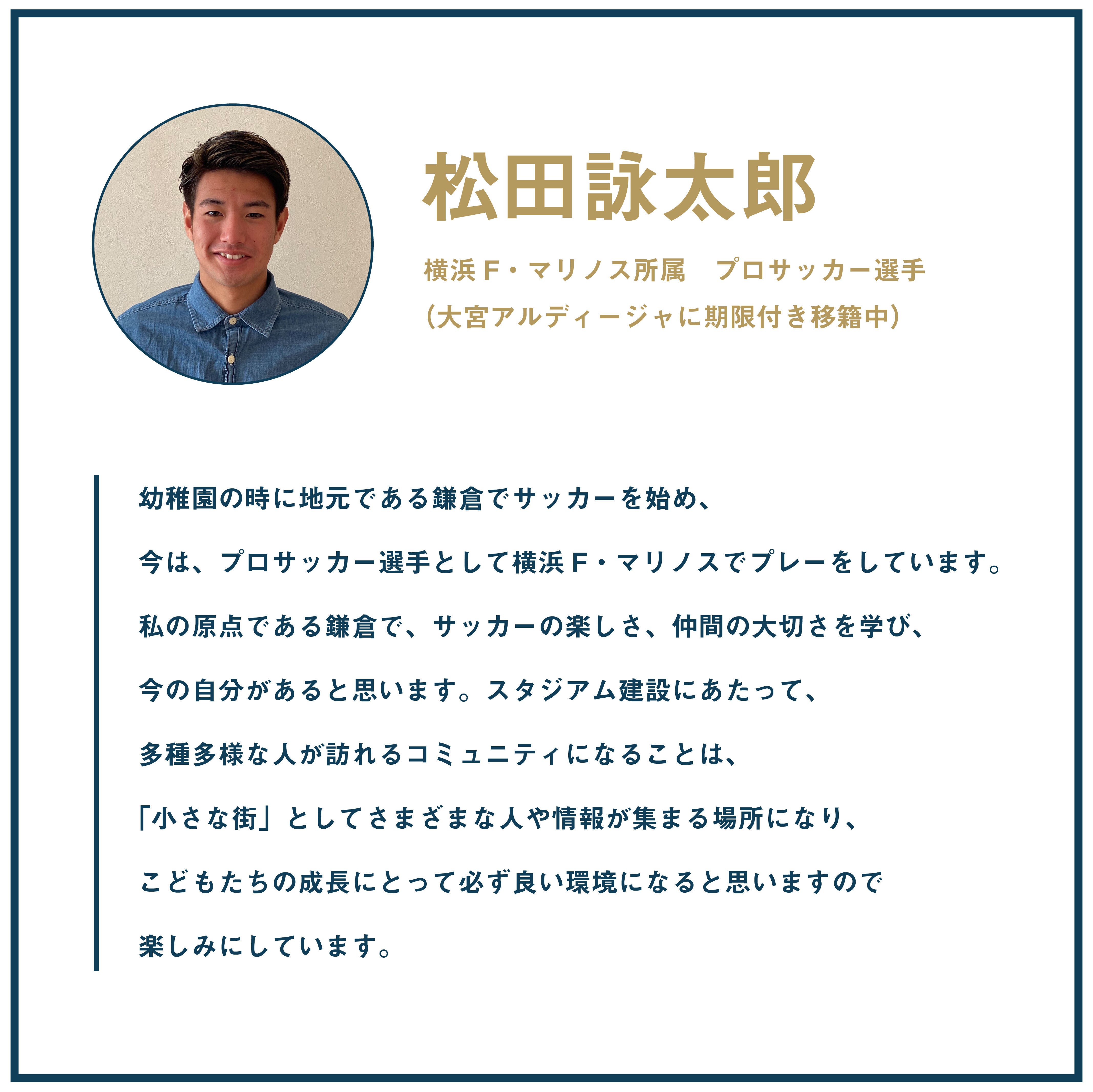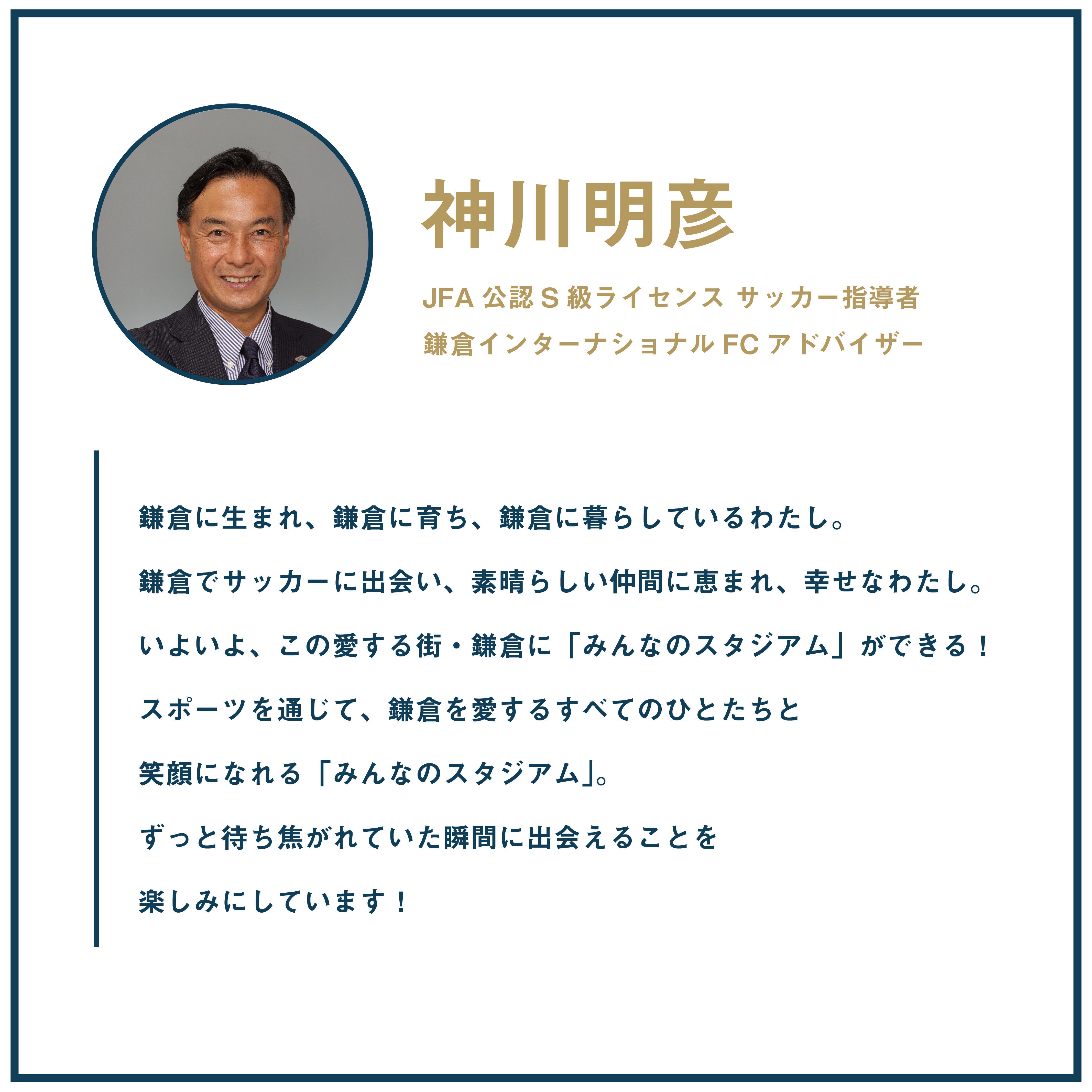 今回のプロジェクトは、鎌倉インテルを設立した当初から「必ず実現をしたい」と思い描き続けてきたことのひとつです。試合や練習拠点となるだけでなく、スポーツを介して、周辺地域の方々が大人から子どもまで世代を越えて、性別やバックグラウンドなどの垣根を越えて賑わいを起こすことができれば、地元のみならず、日本各地から、そして世界からエネルギーを集結させられることができると思います。