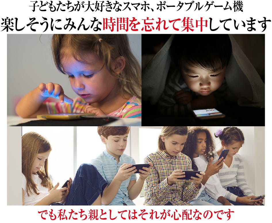 私事ですがうちの子供もスマホ、ゲーム、タブレットと常にディスプレイとにらめっこしているのを見るとやはり、とても心配になってしまうのです。