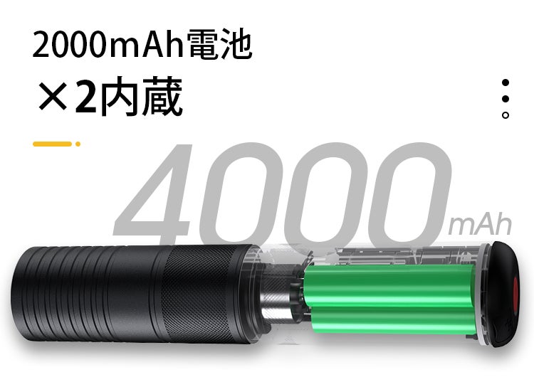 大容量バッテリーを2コ搭載し、金属素材を採用していますが、重さは500mlペットボトルの水とあまり変わらない560gで、女性の方でも楽にお使い頂けます。