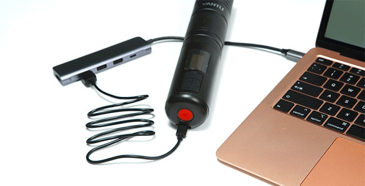 製品下部にはUSBポートが搭載。付属のコードをつなげば簡単に充電ができます。3~5時間でフル充電。モバイルバッテリーとPCからの給電にも対応しております。自然放電は最小限に抑えられており、約3ヶ月間はバッテリーが維持されます。使用されない場合でも、こまめな充電をお勧めします。