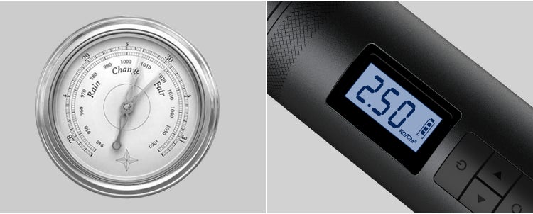 エアゲージの細かなメモリをみての空気圧点検は、目に負担がかかります。本製品の液晶ディスプレイならデジタル表示で値がすぐにわかります。