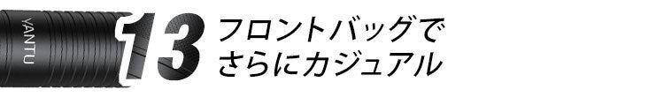 本製品にピッタリな、シックでカジュアルなフロントバッグも登場(別売り)。約32×18×13.5㎝サイズで、本製品だけでなく付属品のバルブや愛車のキーもすっきり収納。EVA素材とポリウレタン(PU)製の完全防水で、突然の雨でも小物をしっかりと守ってくれます。