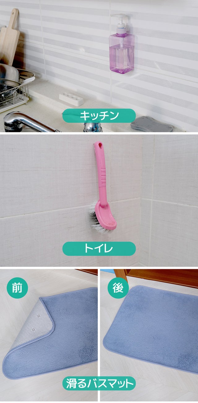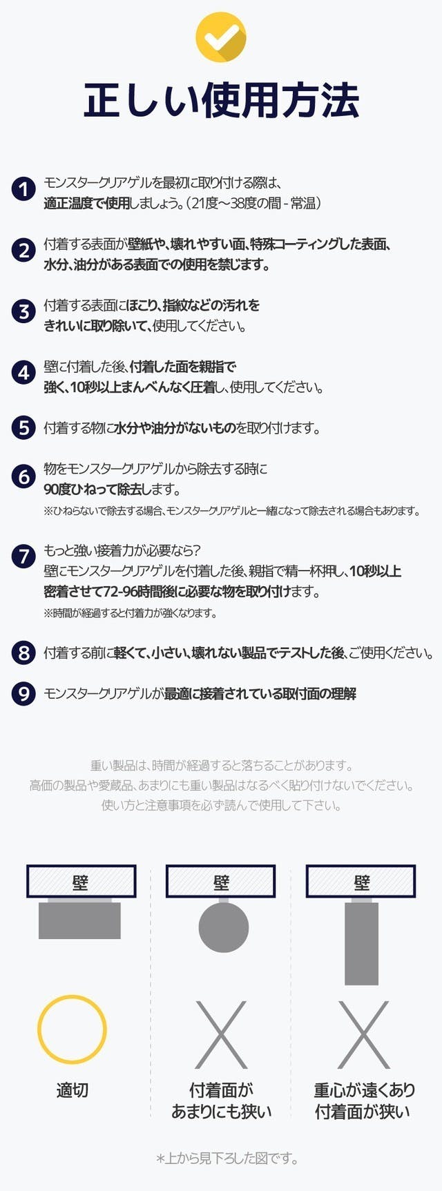 滑りやすいバスマットなどなど!普段使う両面テープで活用できなかったことをモンスターゲルで整理してください!