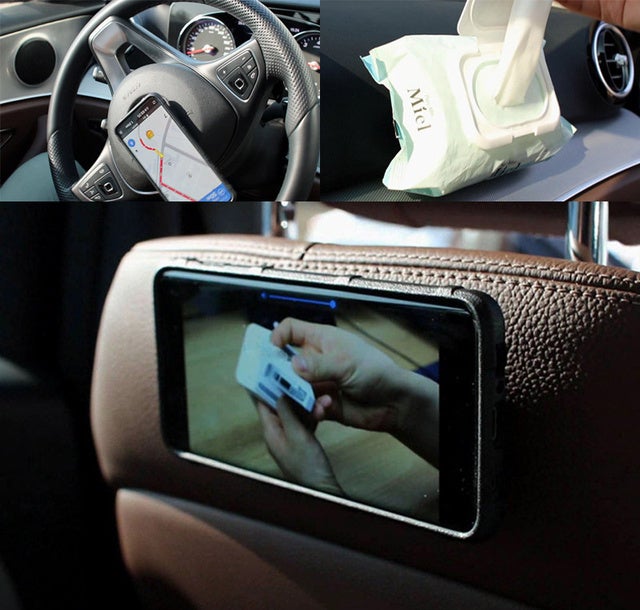 ウェットティッシュや長時間運転時に携帯を貼り付けて動画を楽しむことができます。