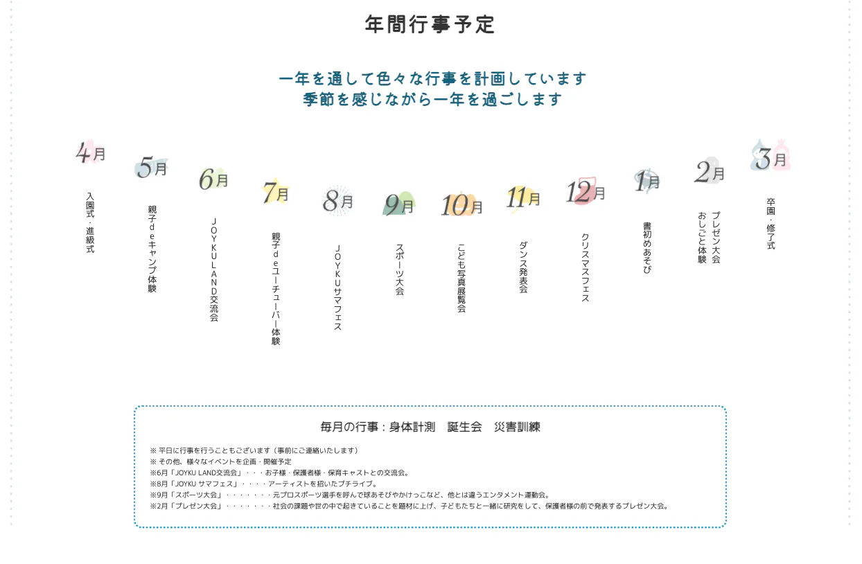 保護者の方々、そして保育キャストたちとが一緒に楽しめる年間行事を企画しております!