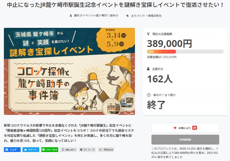 このたびは、謎解き宝探しイベント「コロッケ探偵と龍ケ崎助手の事件簿」の実施に向けて、多くのご支援・ご協力をいただき、ありがとうございました!!