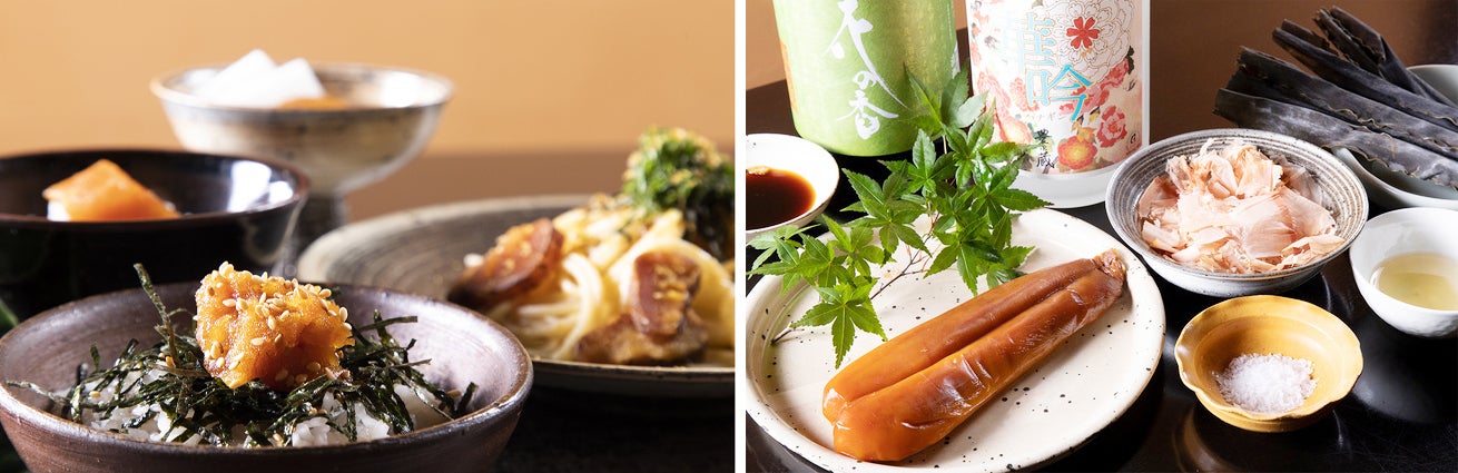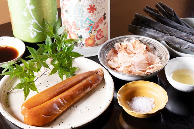 ボラの卵、鰹節や昆布など仕込みに使う材料は