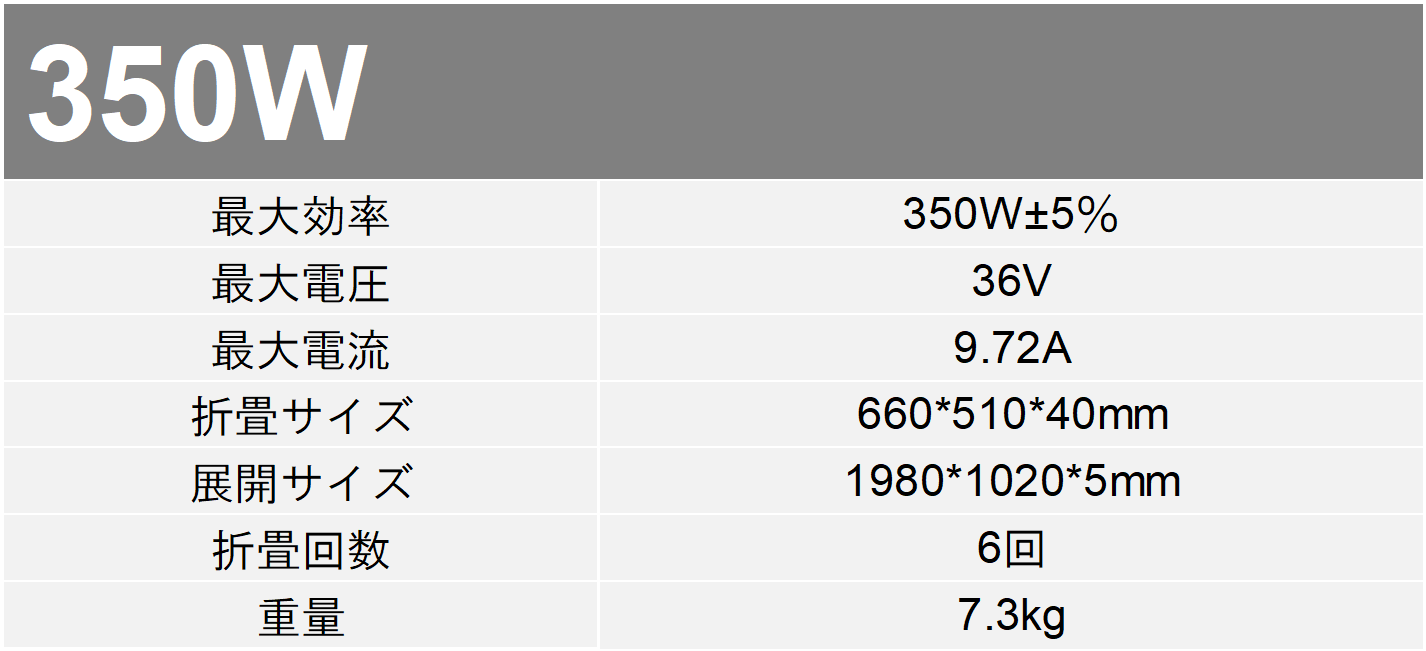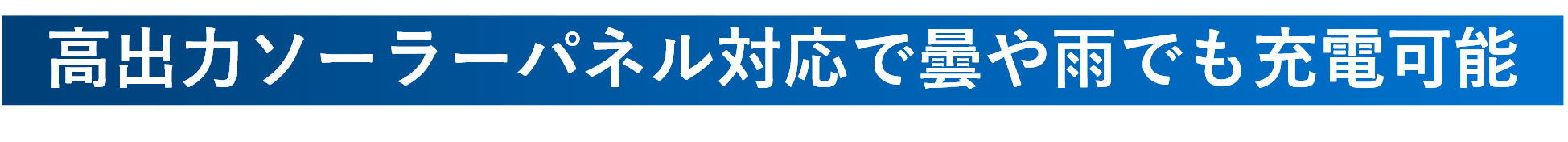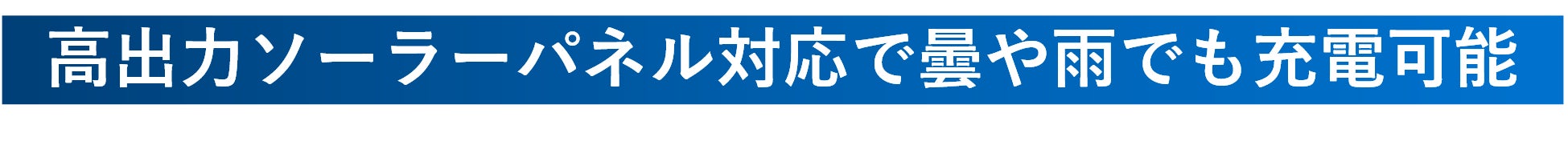 ・曇りや雨でも充電可能な大容量太陽光パネルに対応