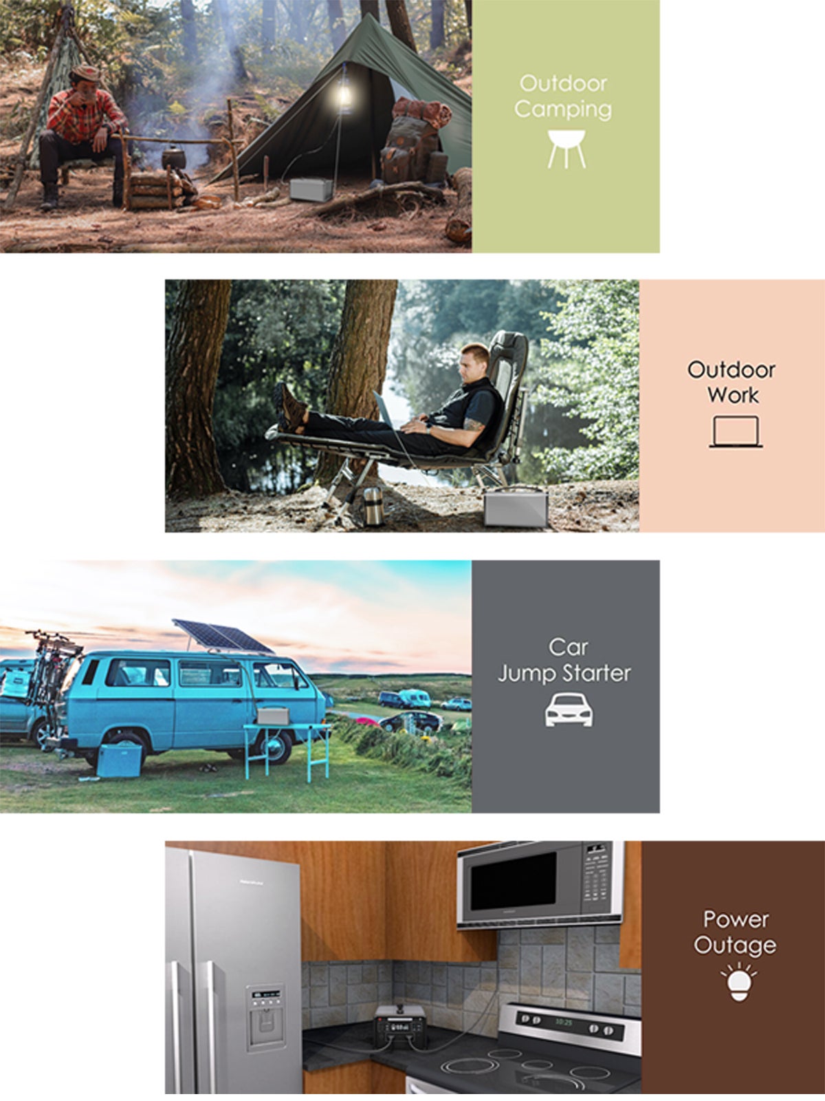 アウトドアやサブバッテリーとしてなど、様々な場面での使用が可能です。