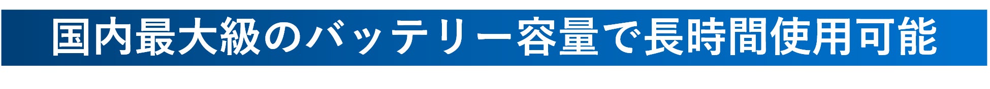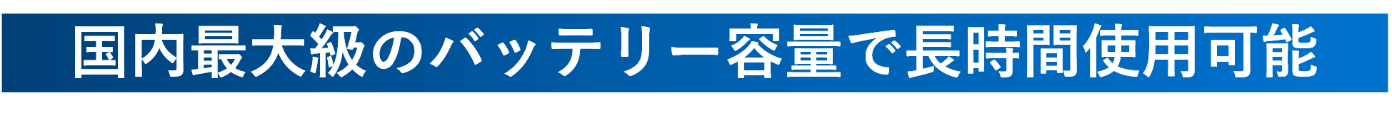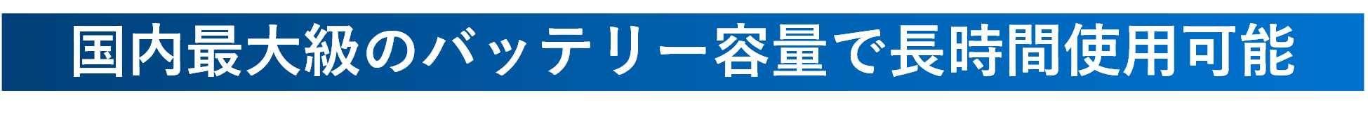 国内最大容量級のバッテリー容量により長時間の使用も可能です。