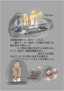 私が、震災で体験した様子を描いた絵を描き溜めた作品が100ページほどあります。これに一年ほど前から体験を思い出しながら文章を添えました。その絵を元にこれまで、出版社に書籍化のための応募や相談を行ってきましたが、出版社からは自費出版を勧めらる一方でした。しかし、費用面で折り合いがつかず出版には至っていません。