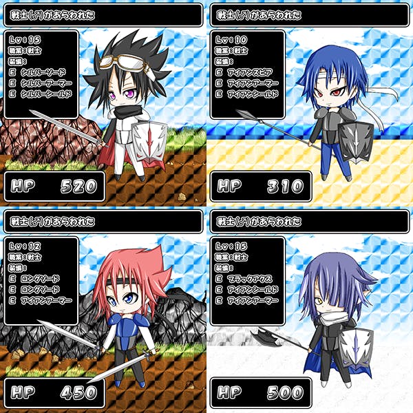 ファンタジーを題材に、戦士・ロード・魔法使い・騎士・僧侶・ハンター・武道家など、