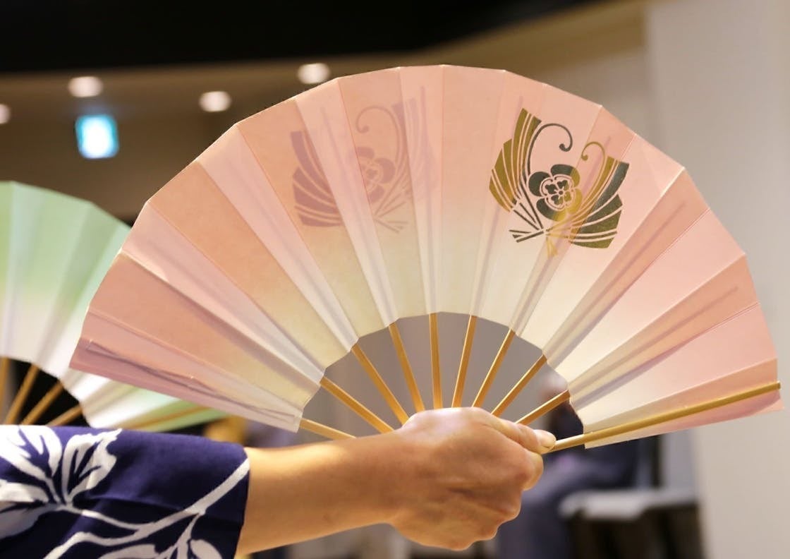 扇子には瑞鳳家の家紋(蝶)があしらわれております。