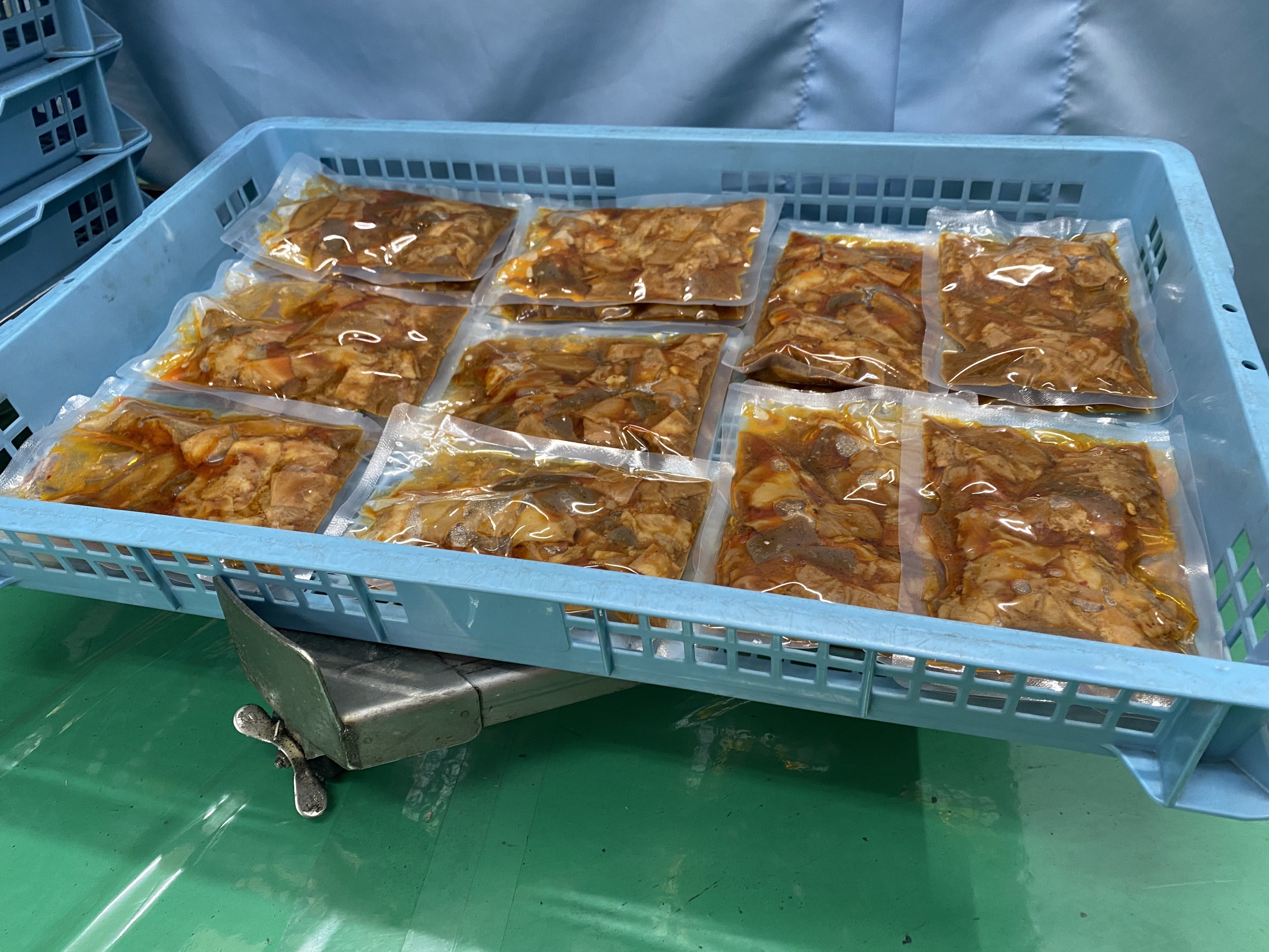 ● 出来上がったら一般販売前に真空パック牛もつ味噌煮込み5パックをお届け