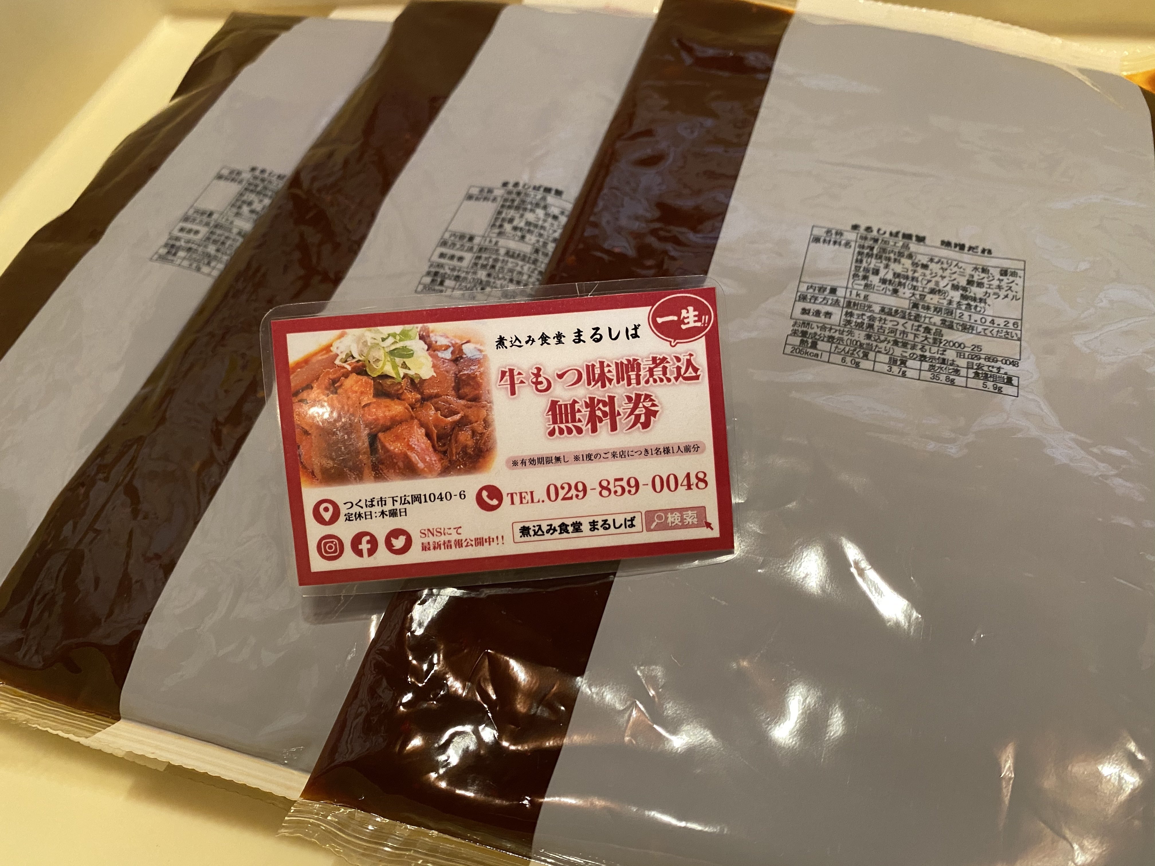 ●出来上がったら一般販売前に真空パック牛もつ味噌煮込み3パックをお届け