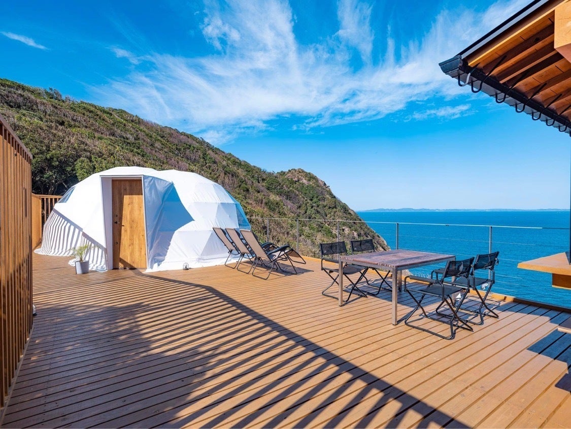 久しぶりの活動報告になります!!ご報告が遅れてしまいましたが7月7日にグランピング施設「ON THE CLIFF」をオープンさせることができました!!当分のご予約はクラファン支援者「グランピング宿泊券」の方中心になると思いますが頑張って運営していきます!!一般の方のご予約は9月から〜10月ごろから開始できるよう調整しています!HPなども製作中なので完成したらまたご報告します。引き続きどうぞ応援よろしくお願いします!!ここから先は完成した施設のご紹介です!!【土壌整備した時に出てきた石で石垣を組みました】【芝生とコンクリートで自作した施設までの道のり】【冷暖房完備のテント内のベットルーム】【ソファでくつろぎながらテント内からも海を眺められます】