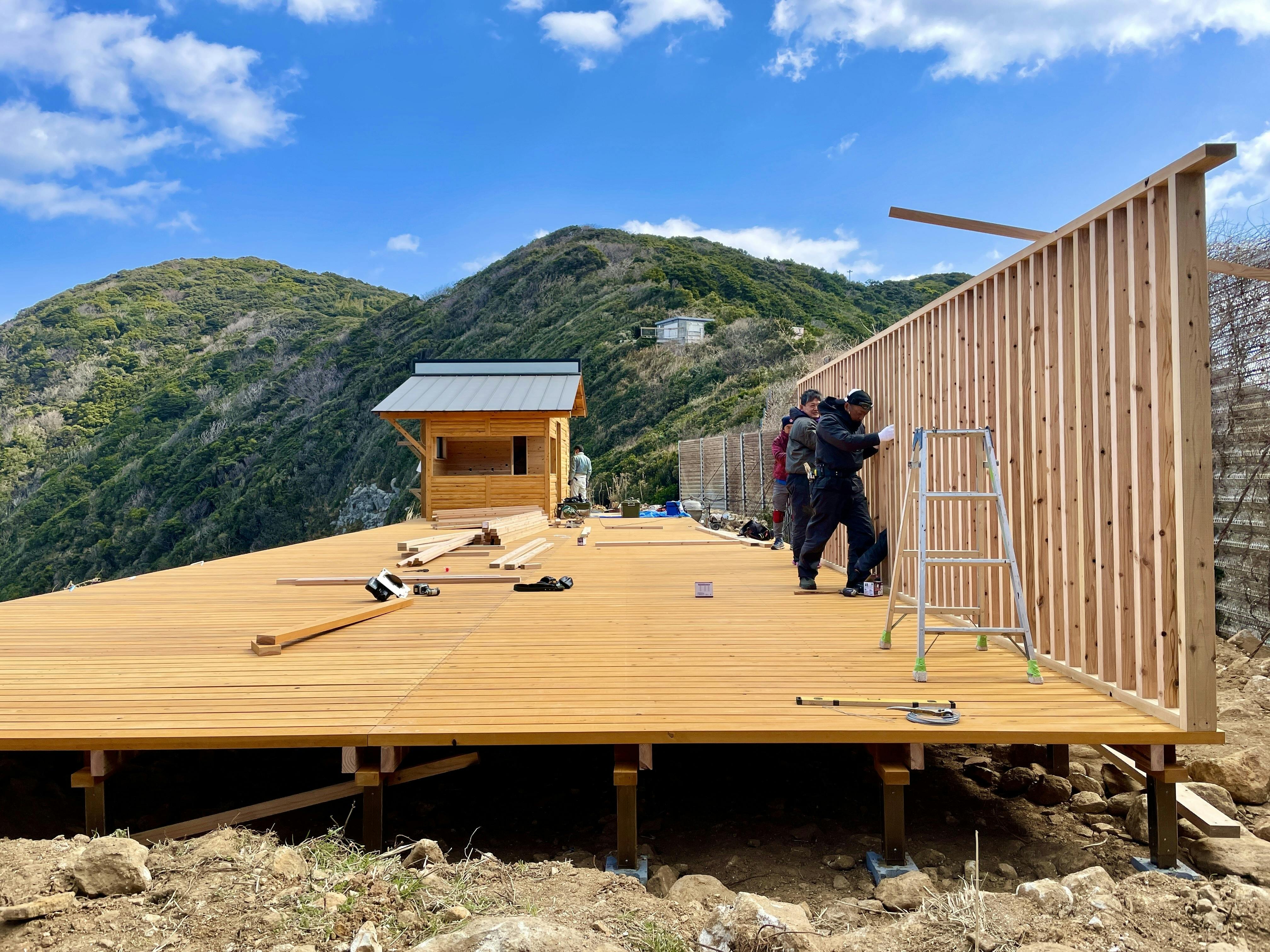 そしてグランピング施設の大きなウッドデッキが完成しました!!