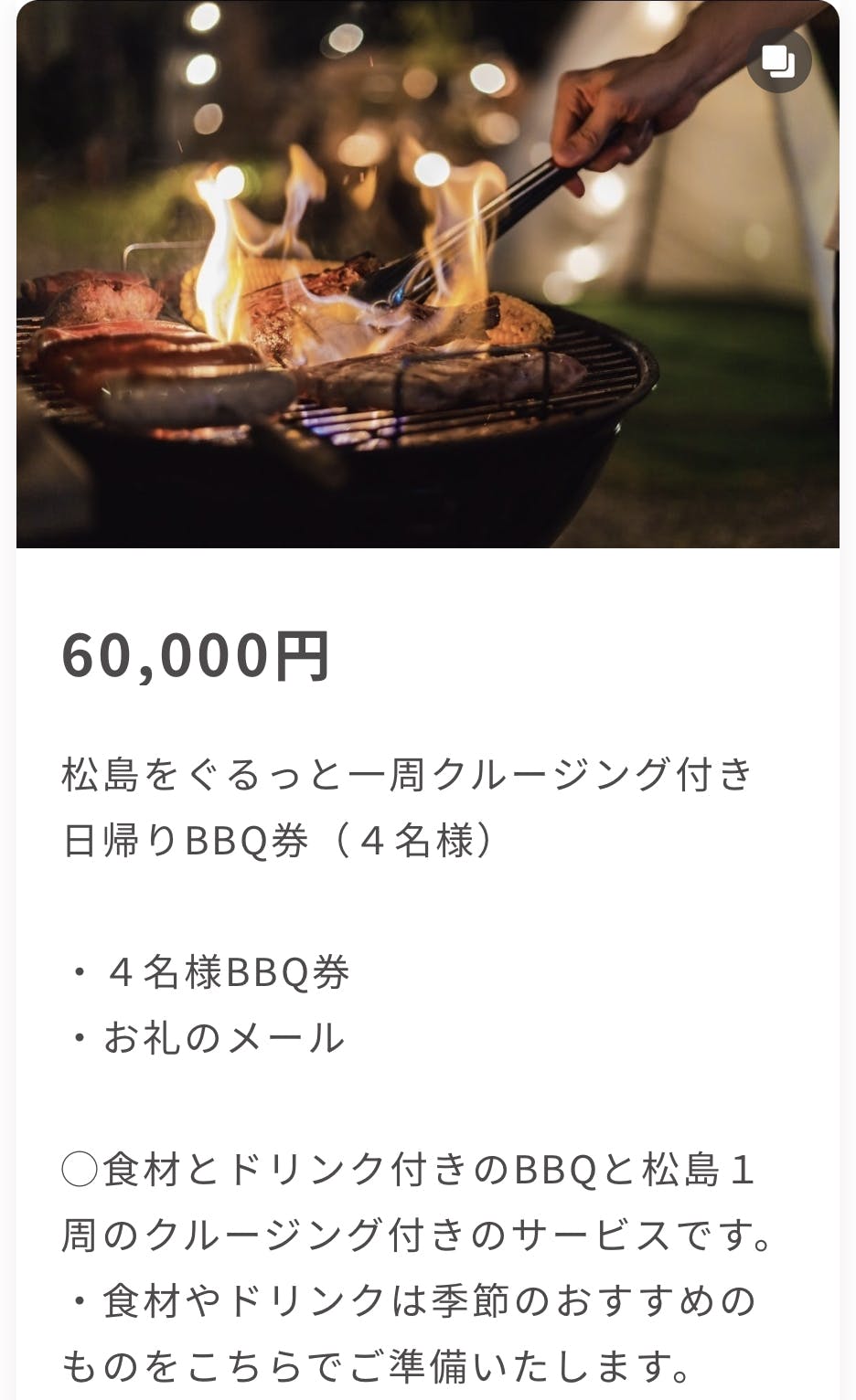 リターンに「松島一周クルージング付き日帰りBBQ券」を追加しました!