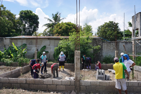 私たちが担当する家のユニットはまだ一段も新しいブロックが積まれていない状況だったので、今日から一段目のスタートとなります。最終日までにどこまで高く壁をつくれるか楽しみです!