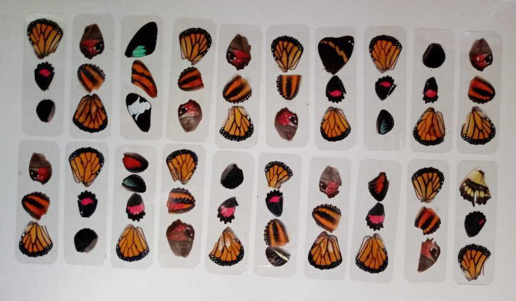 自然保護地で羽化した蝶の翅を使って、本のシオリを作ります。