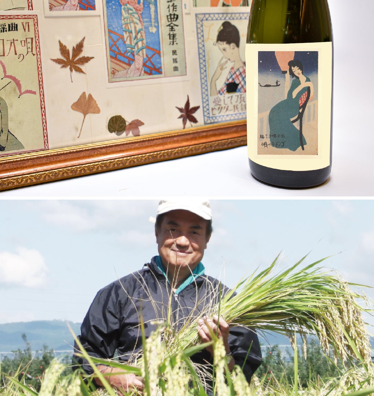 ご当主の祖父は、童謡『シャボン玉』『てるてる坊主』などの作曲家として知られる中山晋平さんです。作曲集の装幀を手掛けた竹久夢二さんの挿絵をラベルにした日本酒を、クラウドファンディングで初めて販売します。ラベルに採用した装幀画は『ゴンドラの唄』。1915年の発表以降、時の名歌手に歌い継がれ、100年が経過した現代もCMや朝のドラマ小説などに使われる名曲です。